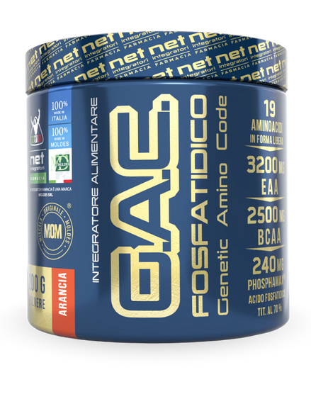 G.A.C. Fosfatidico è una Muscela Oginale Moldes nata dalla selezione di diversi aminoacidi a catena ramificata (BCAA), aminoacidi essenziali (EAA) ed acido fosfatidico con il fine di ottenere la migliore sintesi proteica accelerando il recupero muscolare attraverso la stimolazione della proteina mTOR.